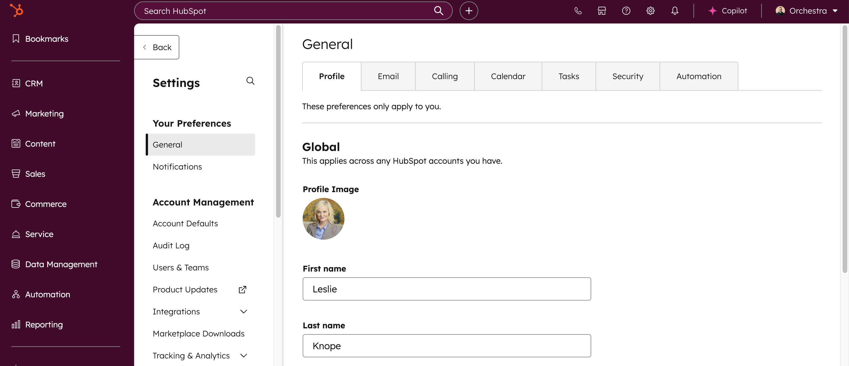 Please note that you may not see all of these sections, depending on your role and seat type. If you think you should have access to one of these hubs and don't see it, please reach out to hubspot@orchestraco.com for support.
