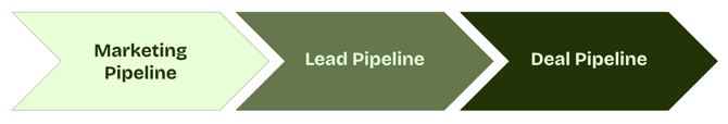 Each pipeline represents a distinct part of the journey and ensures smooth handoffs between Marketing, Business Development/Growth, and Client Teams.
